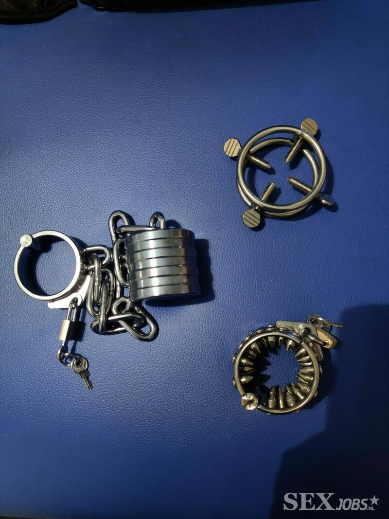 Ik heb een SM ruimte met diverse mogelijkheden tot mijn beschikking. Met o.a. een sling en vele speeltjes.