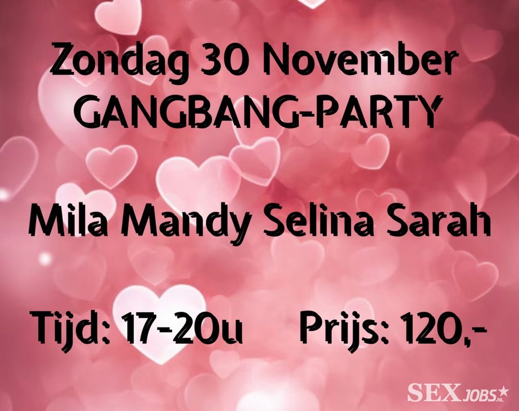 Op zondag 30 Nov van 17-20 uur gangbangparty