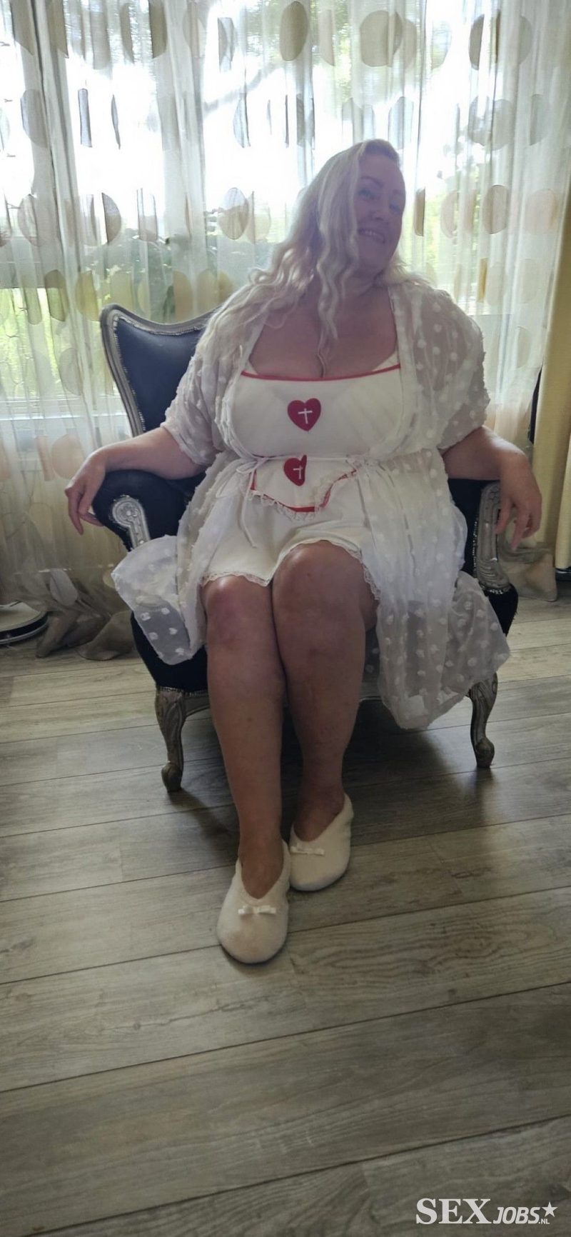 Dag schat, mijn naam is Valencia. Blond haar, 1.70m lang, grote E-Cup borsten, flinke billen en een lekker volslank lijf. Een MILF, een BBW, een sexpoes. Wij gaan lekker vrijen met elkaar, tongzoenen, elkaar verwennen, genieten en ik breng jou tot een explosie van genot.