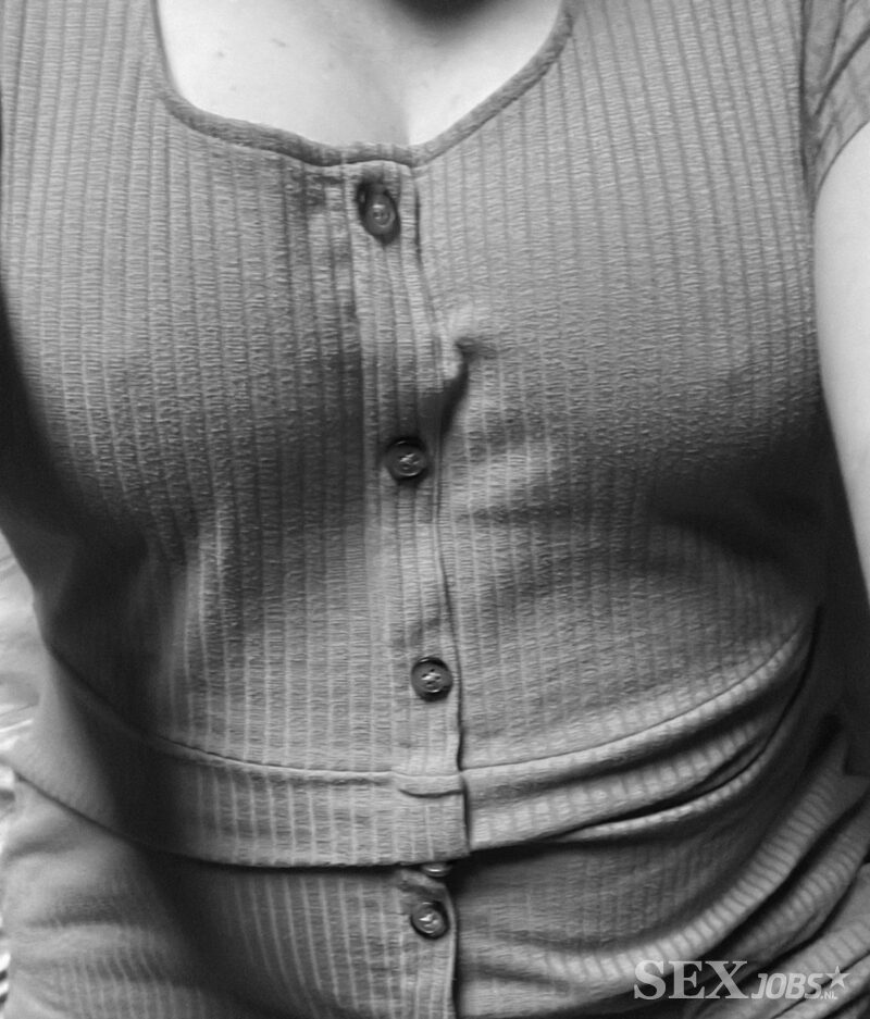 Ik zal me truitje uit doen en me borsten bloot maken.