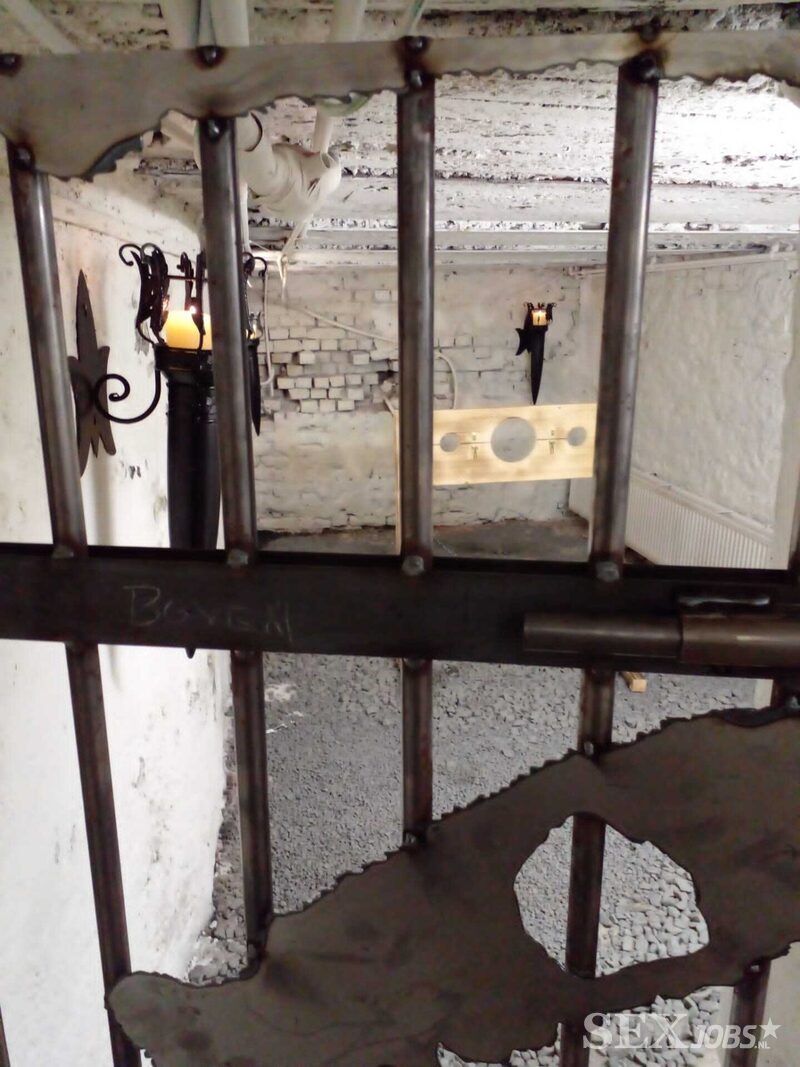 Stap binnen in een wereld waar duisternis en verlangen samensmelten. Achter de zware, kille ijzeren poorten van deze verborgen kelder ligt een rijk van macht, overgave en rauwe intensiteit. Het met kaarslicht verlichte vertrek ademt een sfeer van mysterie, waarin elke ademhaling de spanning verder doet stijgen.