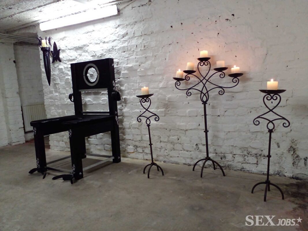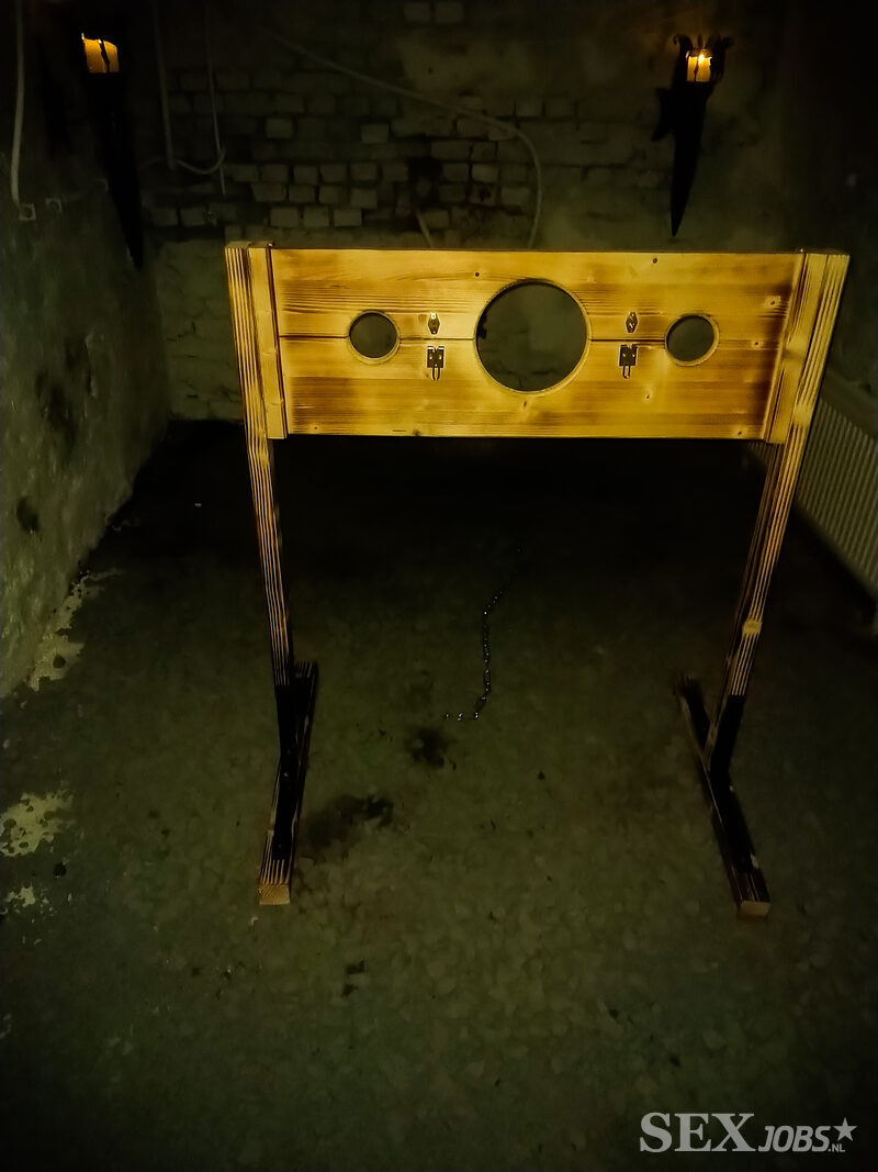 Aan de muren hangen kettingen en boeien, wachtend op hun volgende gebruik. In de schaduwen staan schandpalen en imposante pijnbanken, elk een stille getuige van de scènes die zich hier afspelen. Hier worden grenzen verkend, verlangens blootgelegd, en regels van controle herschreven.