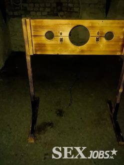 Het hart van de kelder is de schandpaal, een symbool van overgave waar de tijd lijkt stil te staan. Hier worden verlangens niet slechts gefluisterd, maar uitgespeeld met vurige intensiteit. Aan de pijnbank, met zijn verweerde houten frame en leren banden, wordt discipline niet alleen ondergaan maar ook gevierd, in een spel van vertrouwen en controle.