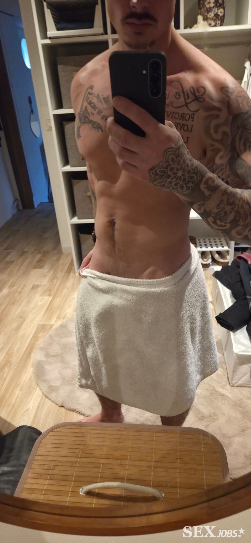 Sportief gebouwd en heb meerdere tattoo's. Ik ben 1.70 lang, weeg 72kg en mijn gereedschap is 17 cm.