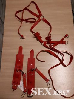 • Bondage van bv. armen, handen, nekstrap, pik, ballen