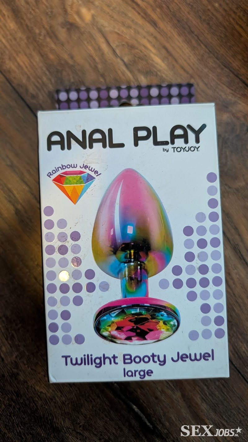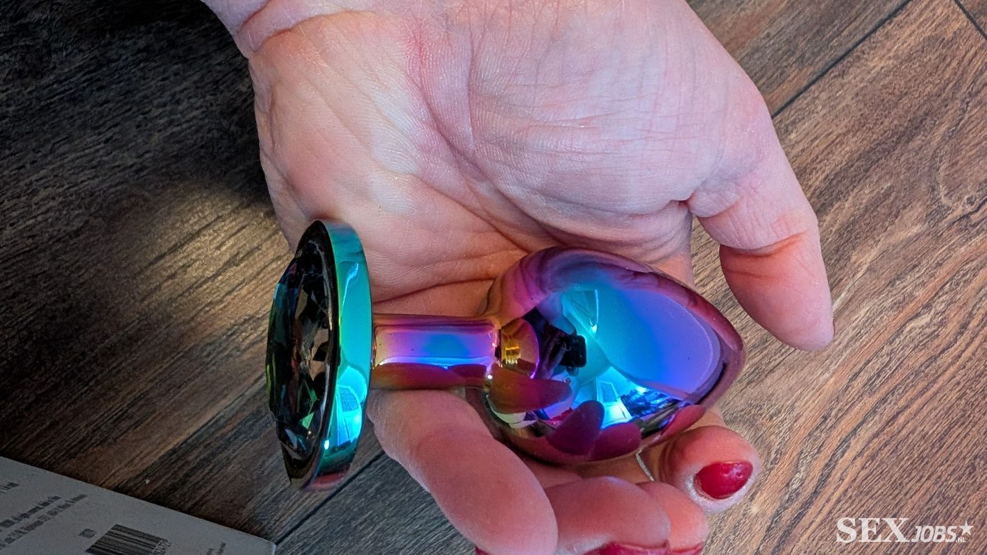 Gekleurde metalen buttplug van Toyjoy. Met juweel aan het uiteinde. Lengte 9,5cm. Doorsnede 4,1cm. Versturen of ophalen.